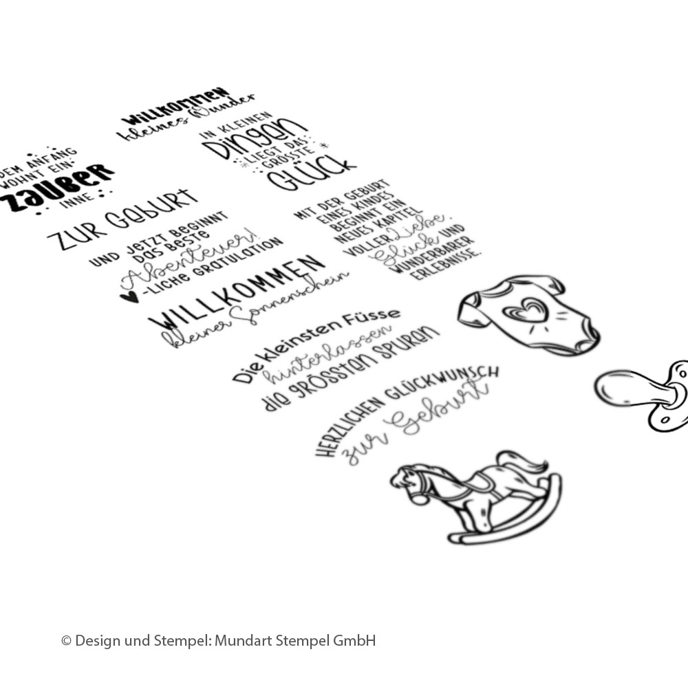 Dieses Set beinhaltet 12 Klarsichtstempel mit Texten in Deutsch.