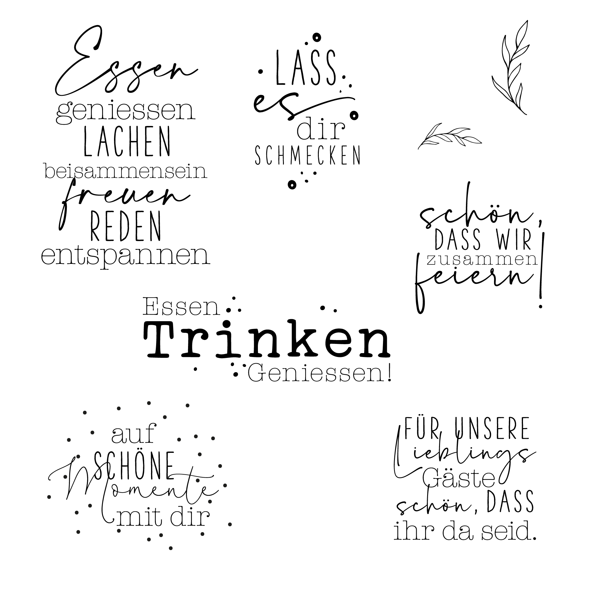 Dieses Set beinhaltet 8 Klarsichtstempel mit Texten in Deutsch.
