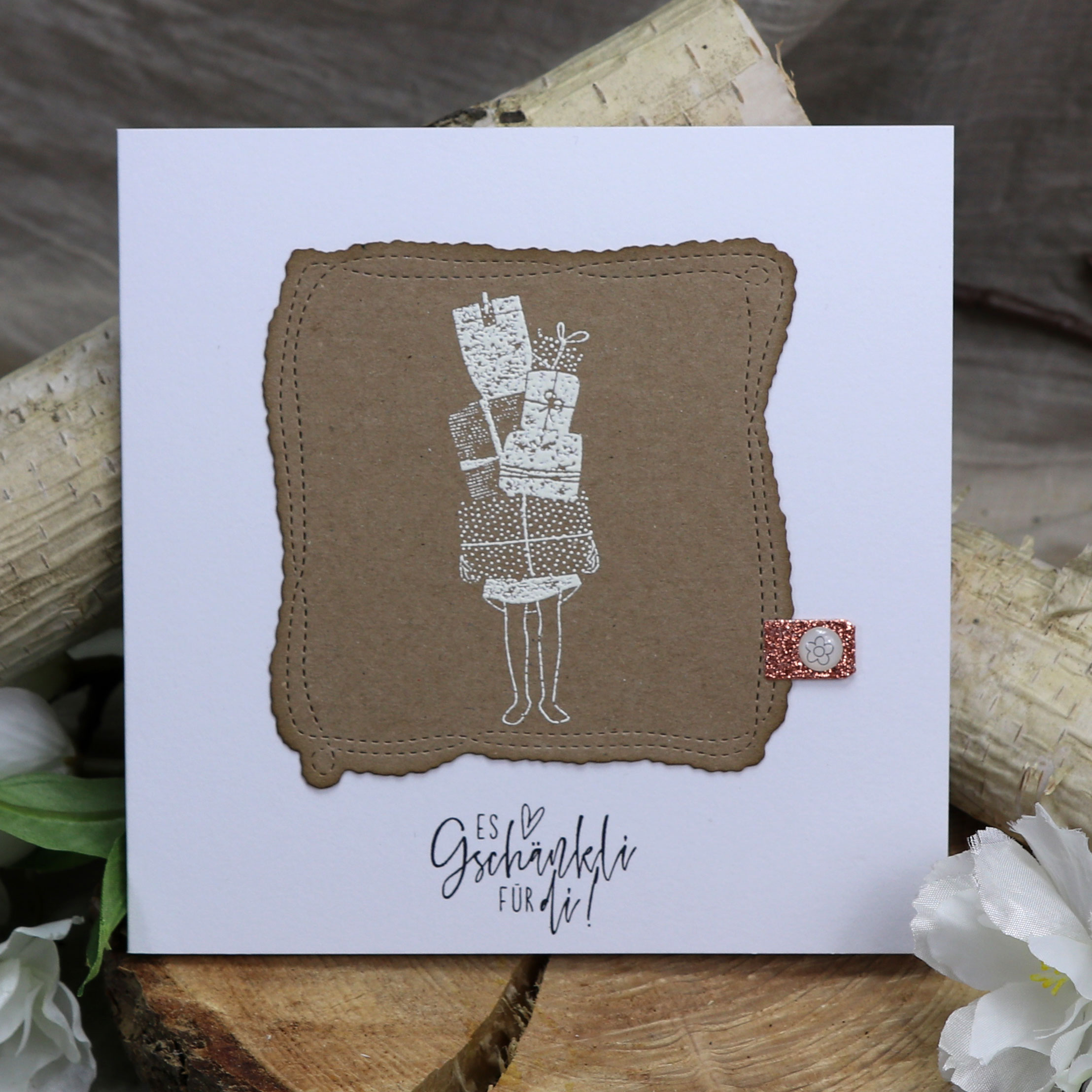 Ziehe den Stempel von der Folie ab. Klebe den Stempel auf einen Acrylblock, betupfe ihn vorsichtig und regelmässig mit Stempelfarbe. Nach der Benutzung reinigst du den Klarsichtstempel mit dem Stempelreiniger.