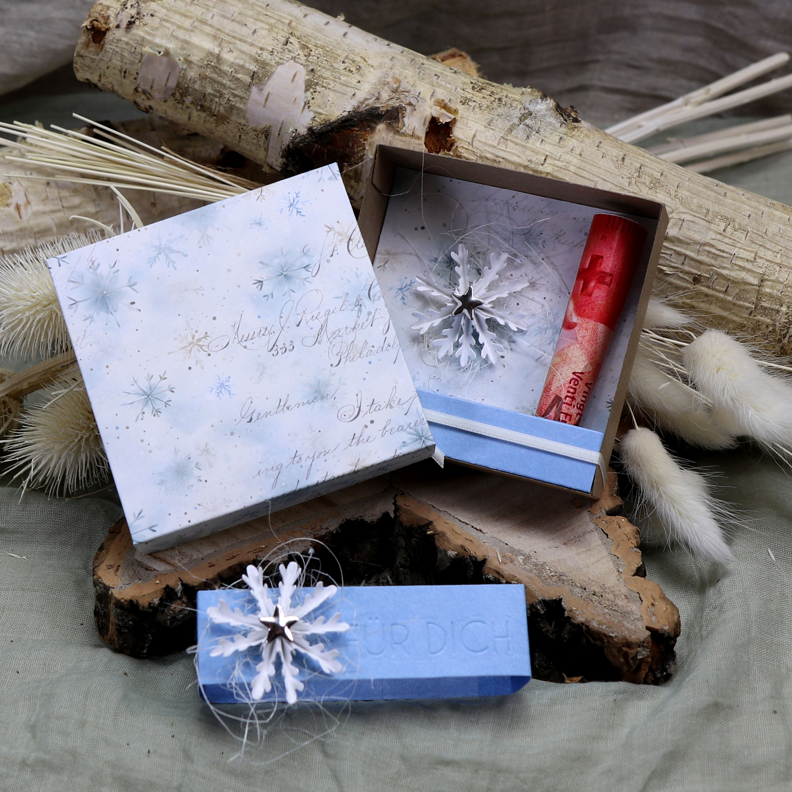 Eine schnelle Geschenkschachtel mit Banderole und 1000 Gestaltungsmöglichkeiten. Die tolle Box ist ganzjährig einsetzbar für Geldgeschenke, Gutscheine und kleine Kostbarkeiten. Für jede Gelegenheit geeignet, weihnachtlich, sommerlich, herbstlich, zum Geburtstag und viele Gelegenheiten mehr.