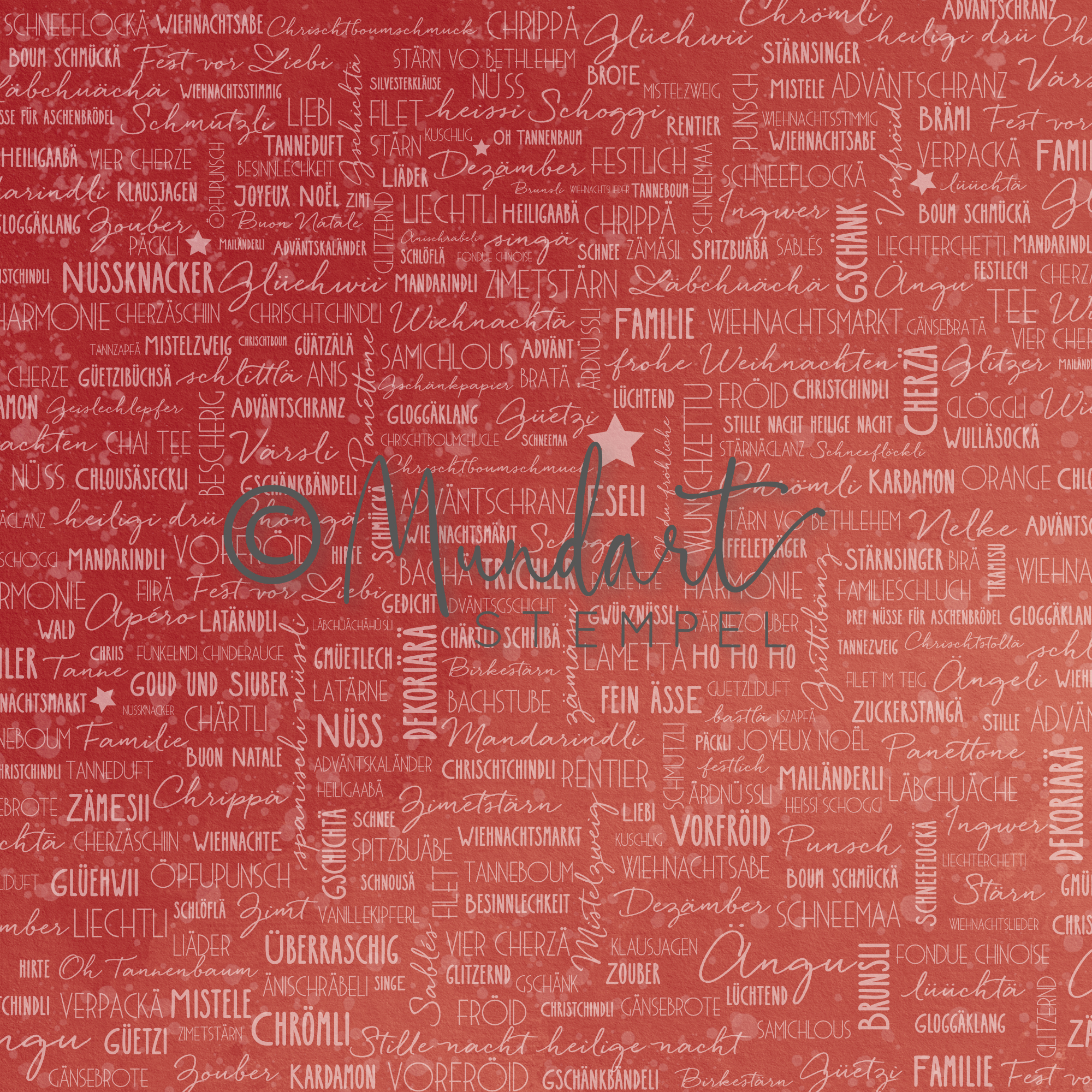 Designpapier Revival Schlagwörter Mundart Weihnachten rot
