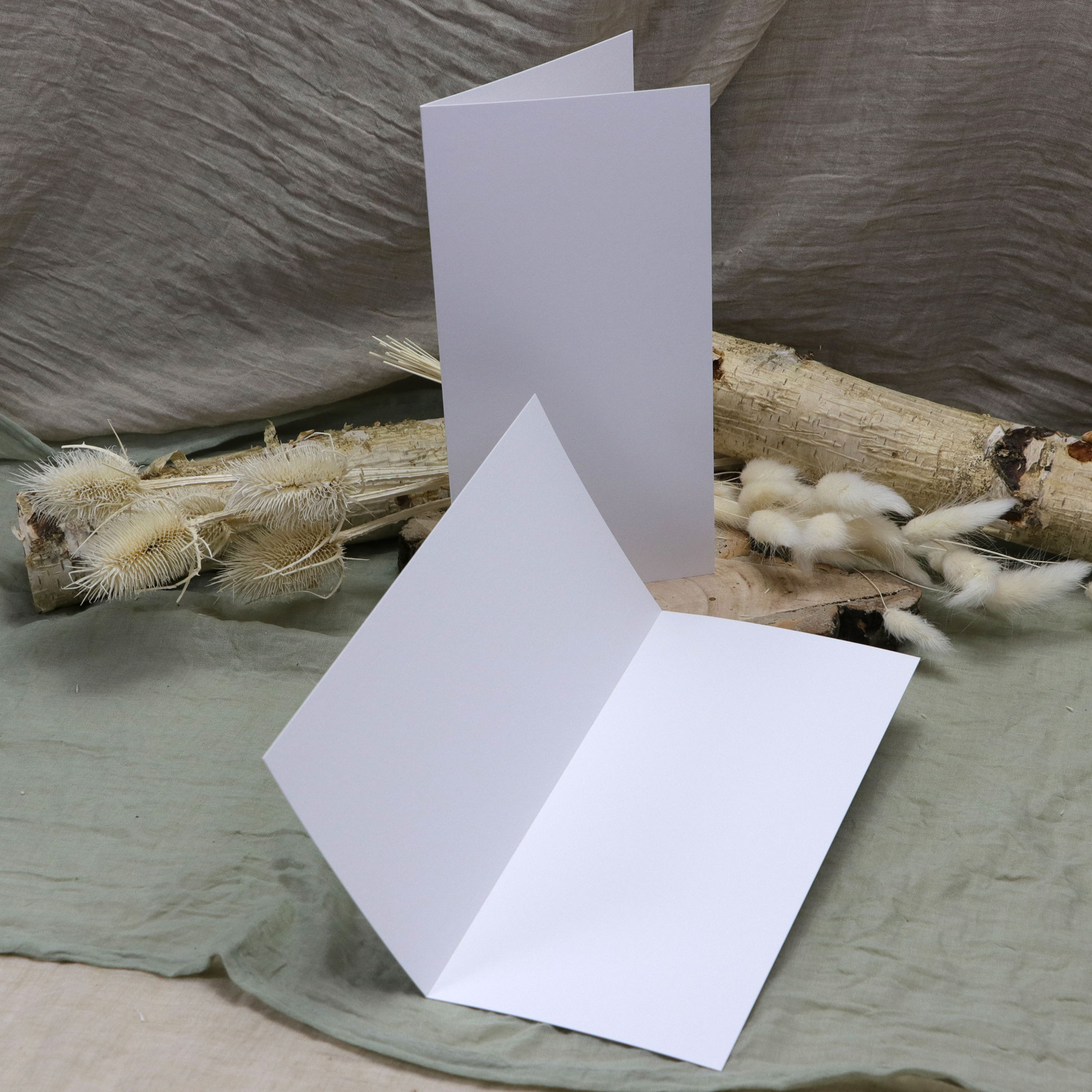 Diese Grundkarte wurde aus dem gleichen Papier wie unsere Designpapiere in der Qualität Munken hergestellt. Die Karten wurden in einer Schweizer Druckerei geschnitten, gerillt und passgenau gefaltet.