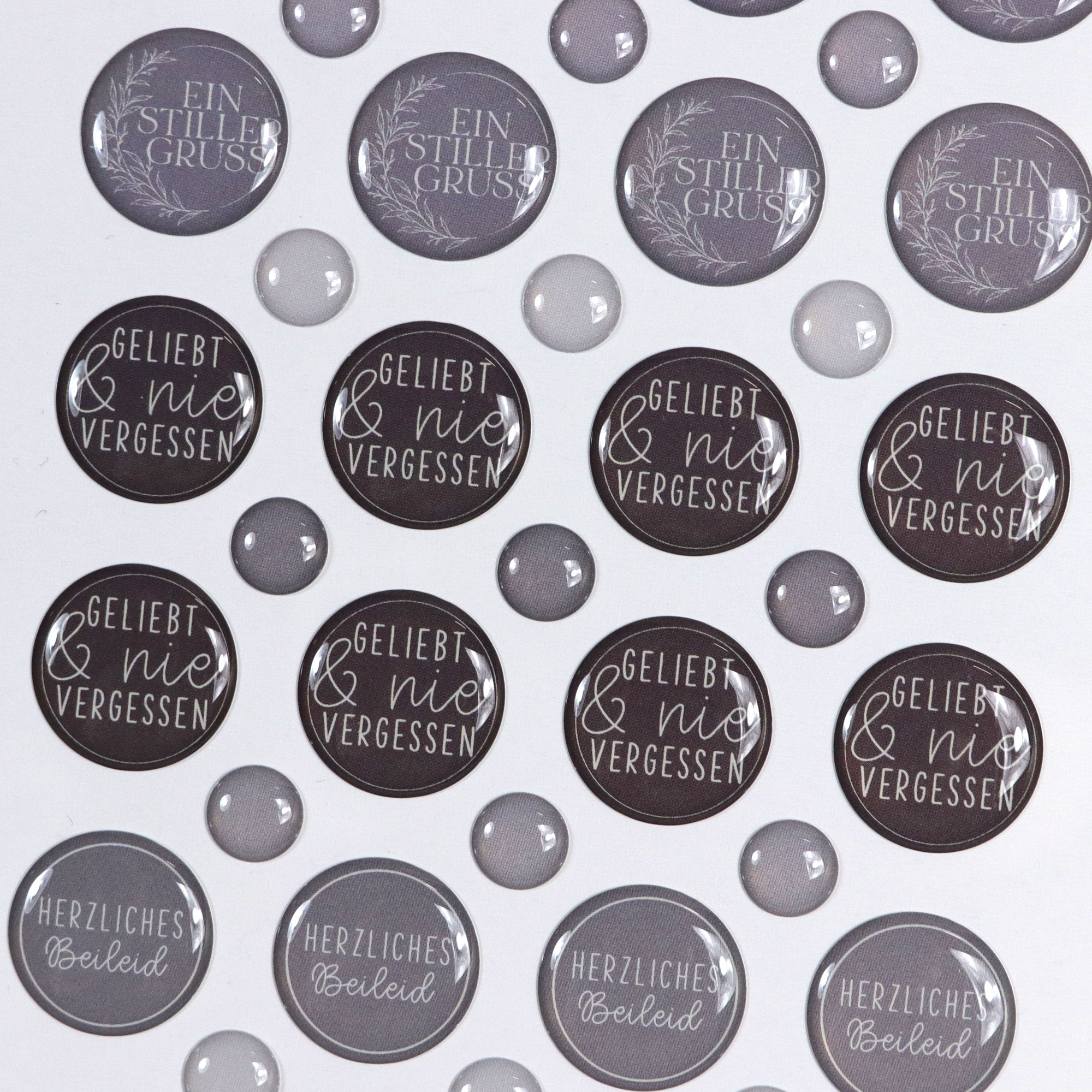 8 Enamel Dots (Ø 17 mm) mit dem Text Herzliches Beileid